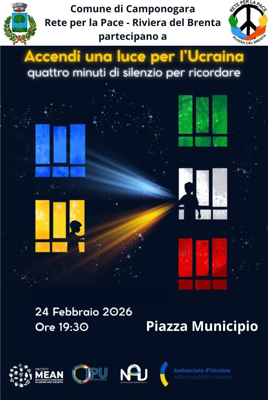 I Comuni di Camponogara, Mira, Santa Maria di Sala, Vigonovo. sono riusciti ad organizzare un’iniziativa a sostegno dell’Ucraina. in collaborazione con la Rete per la Pace – Riviera del Brenta, (coordinamento spontaneo di associazioni, Amministrazioni locali, famiglie, giovani e cittadini, fra cui anche il Movimento dei Focolari Veneto).