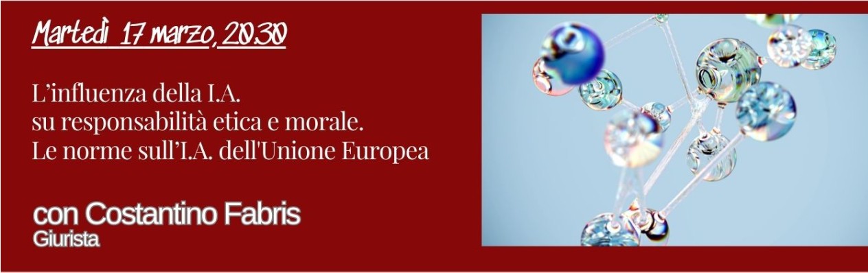 Le norme sull’I.A. dell’Unione Europea. la serata sarà condotta dal Giurista Costantinio Fabris.