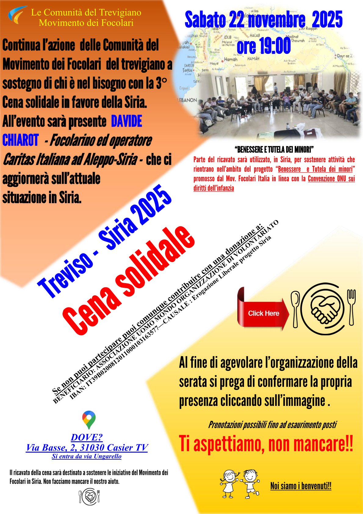 TREVISO – 3° CENA SOLIDALE CON LA SIRIA