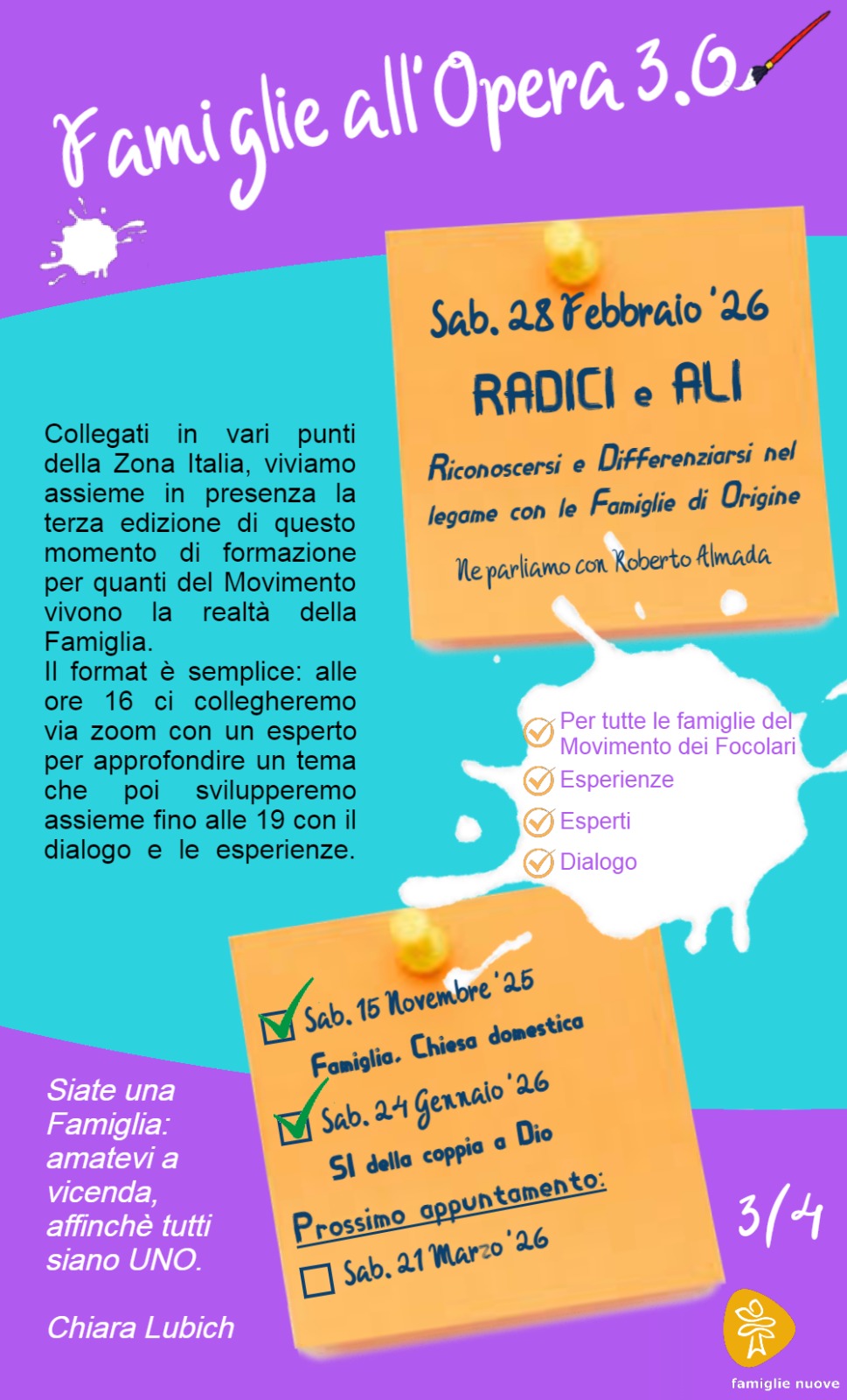 VERONA – FAMIGLIE ALL’OPERA 28 febbraio, ore 15,30 in Focolare a Vero Appuntamento aperto a tutte le famiglie dell’Opera e anche a coppie nuove. Visualizzazioni: 28