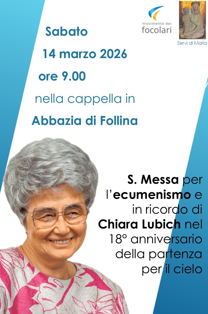Sabato 14 marzo alle ore 9,00,  come di consueto a Follina, nella cappella dell’Abbazia, ci ritroviamo per la messa con intenzione Ecumenica.