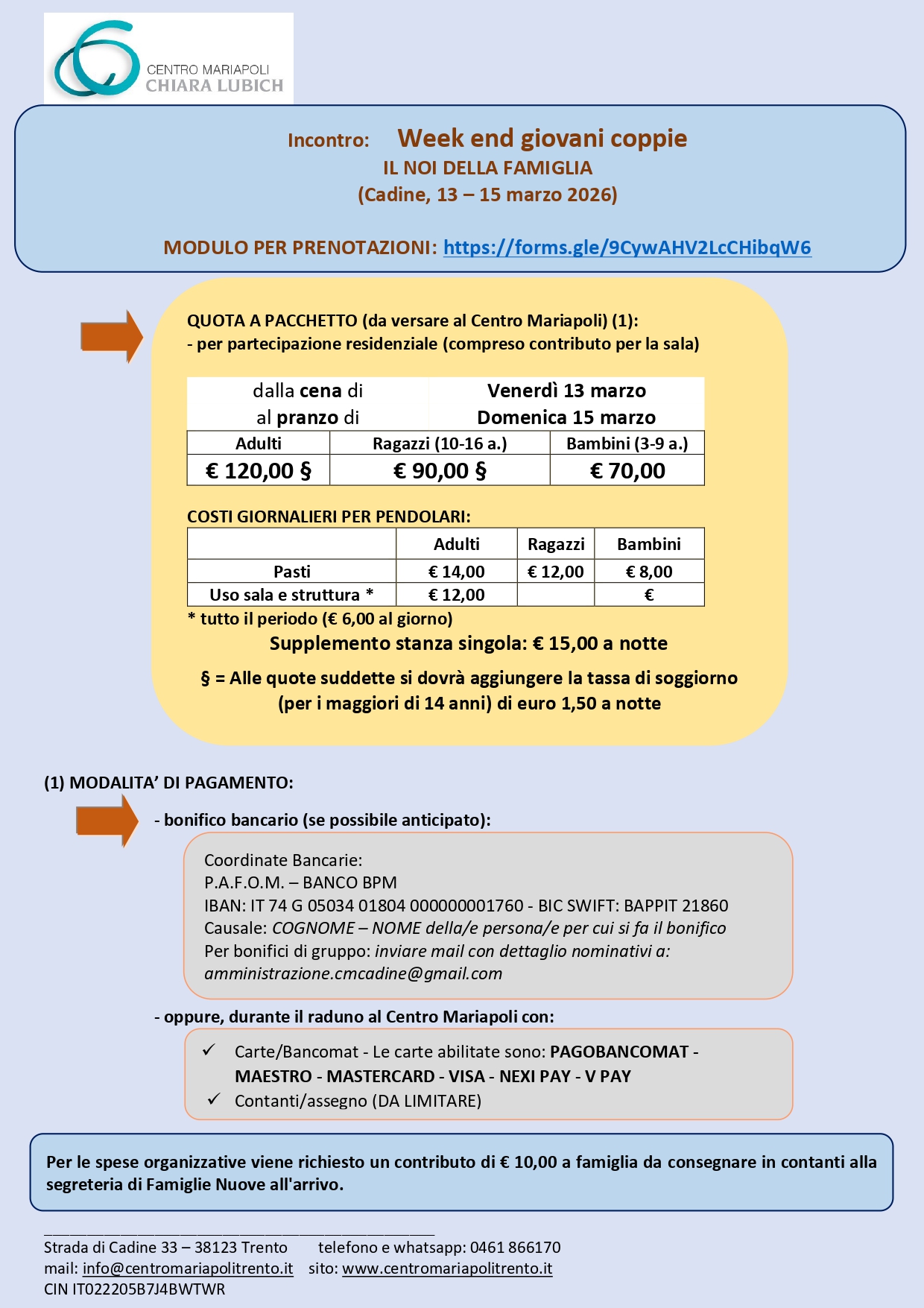 Incontro per giovani famiglie presso il Centro Mariapoli di Cadine (Tn)