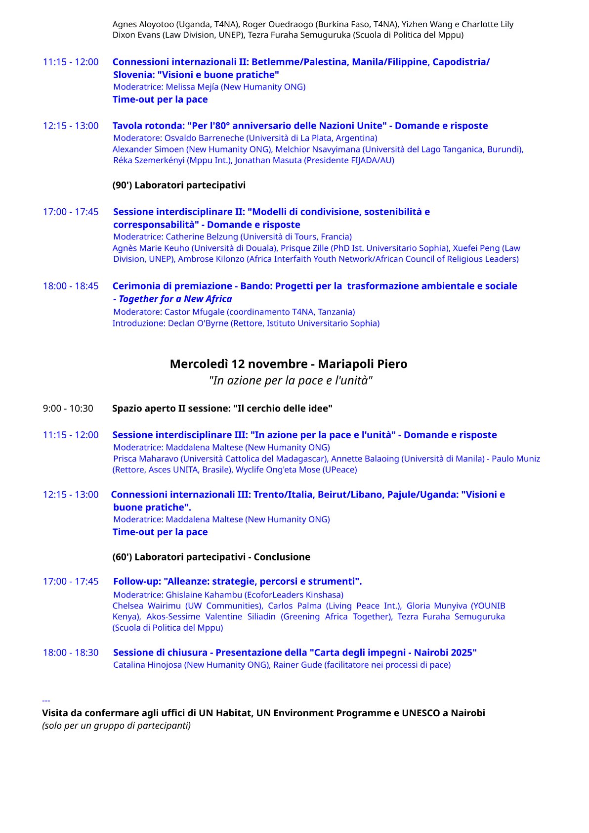 Convegno internazionale a NAIROBI 10-12 novembre 2025 “Cities, Communities, Care. Youth in Action for Sustaining Peace”