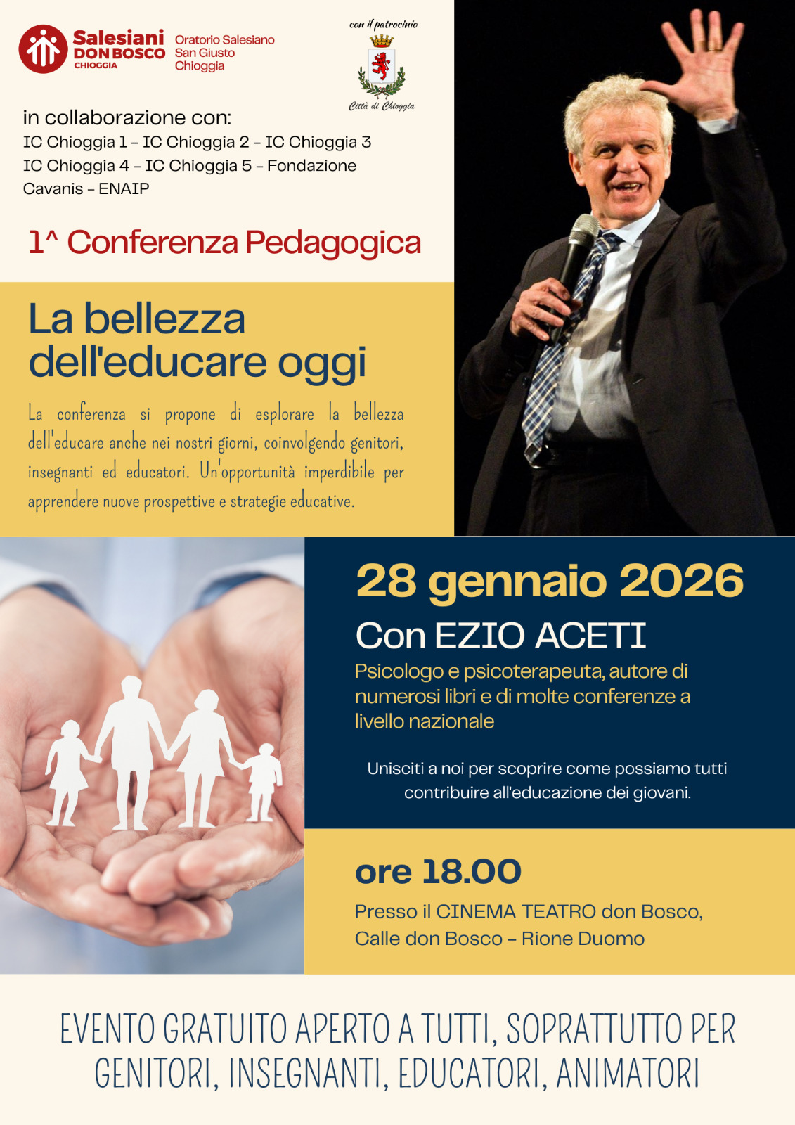 La belezza di Educare – Ezio Aceti a Chioggia 28 gennaio ore 18:00 a Chioggia presso il Cinema Teatro don Bosco, Calle don Bosco – Rione Duomo. Visualizzazioni: 25